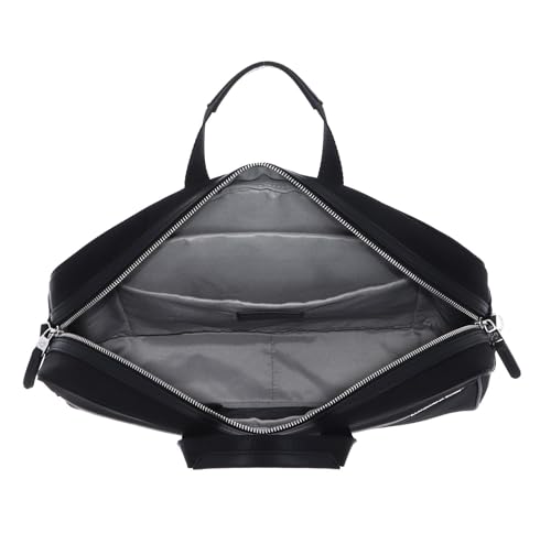 • This double handle folder with adjustable and removable shoulder strap features an organised main compartment with double zip closure and 17 inch laptop compartment with flap and contrasting black PU details. The briefcase can be attached to the case thanks to the smart sleeve on the back