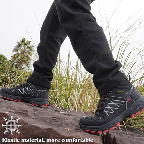 Queday Men's Hiking Boots Waterproof Outdoor Lightweight Trekking Shoes Ankle High Boots 4