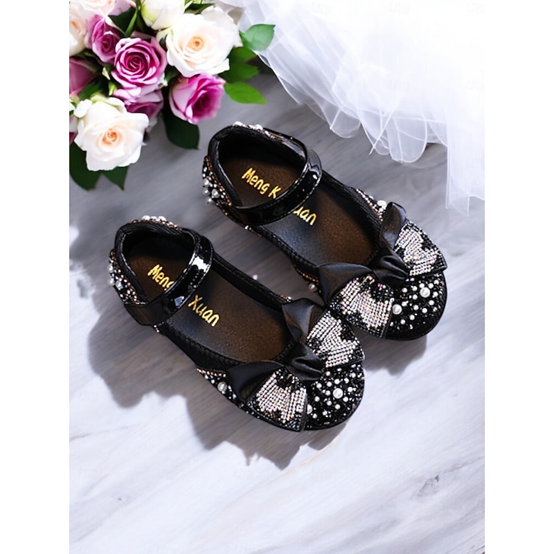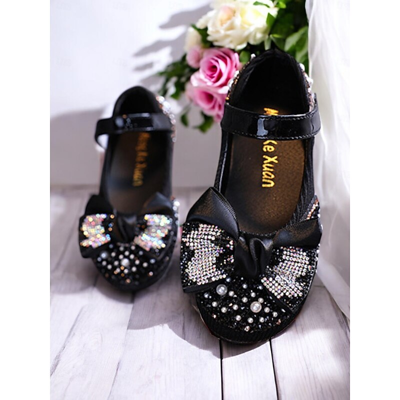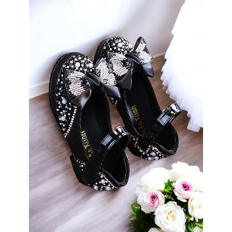 HOT ! Girls' Glitter Bow Mary Jane Shoes – Sparkly Rhinestone Flower Girl Flats for Parties & Weddings