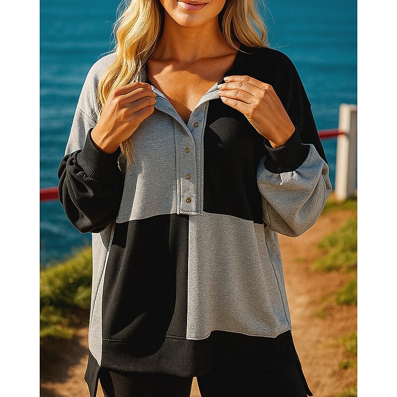 $28.99 - Women's Pullover Sweatshirt Casual Tops Buttons Long Sleeve Top Athleisure Fall Color Block Breathable Outdoor Jogging Running Sportswear Activewear Black Pink Blue 2025. Shop for cheap Hoodie & Sweatshirt online? Buy at lightinthebox.com on sale today!