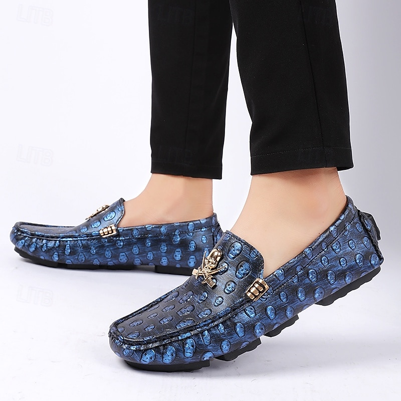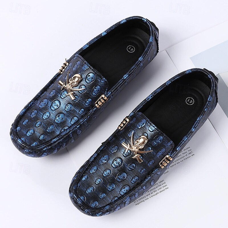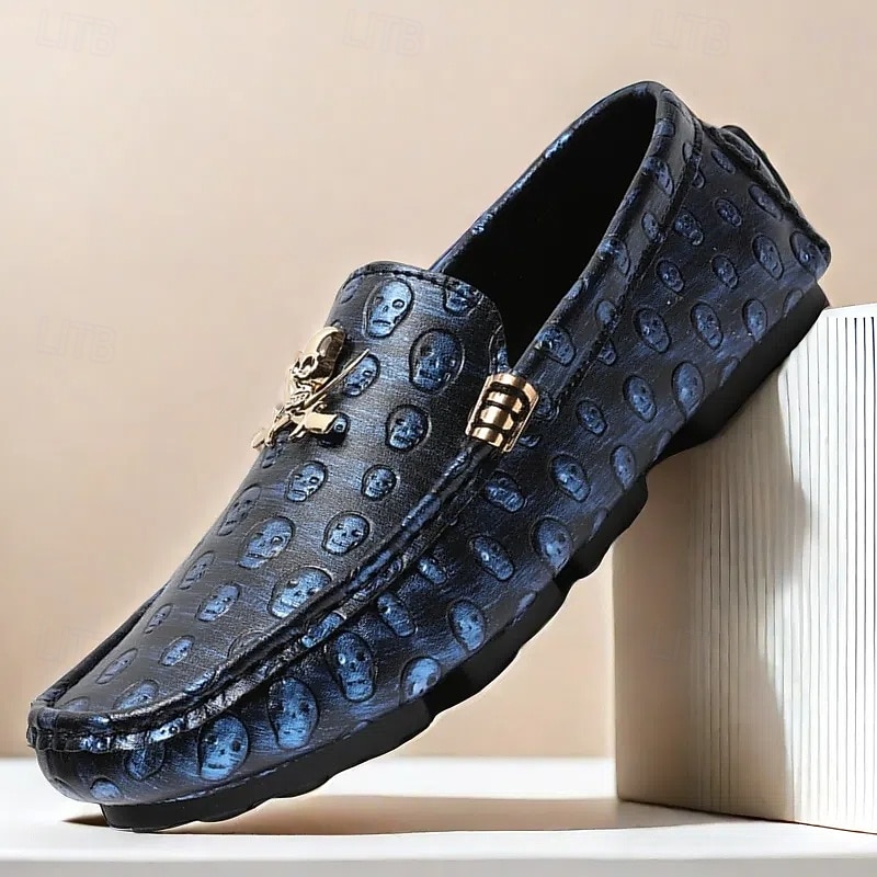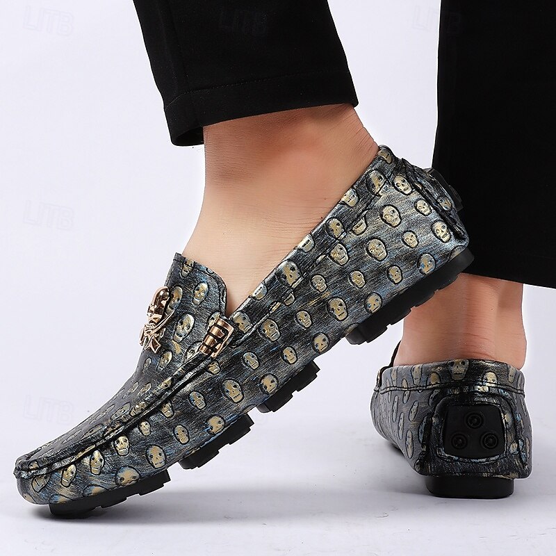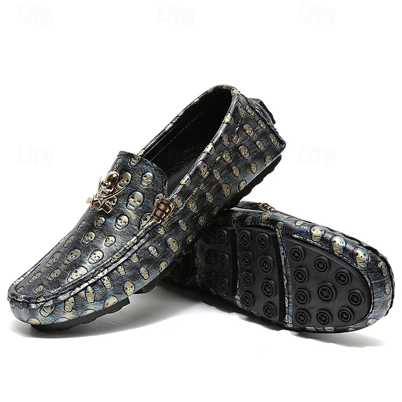 Men's Skull Pattern Slip-On Loafers - Faux Leather Casual Shoes with Metal Skull Detailing, Stylish Gothic Design for Parties and Everyday Wear 24