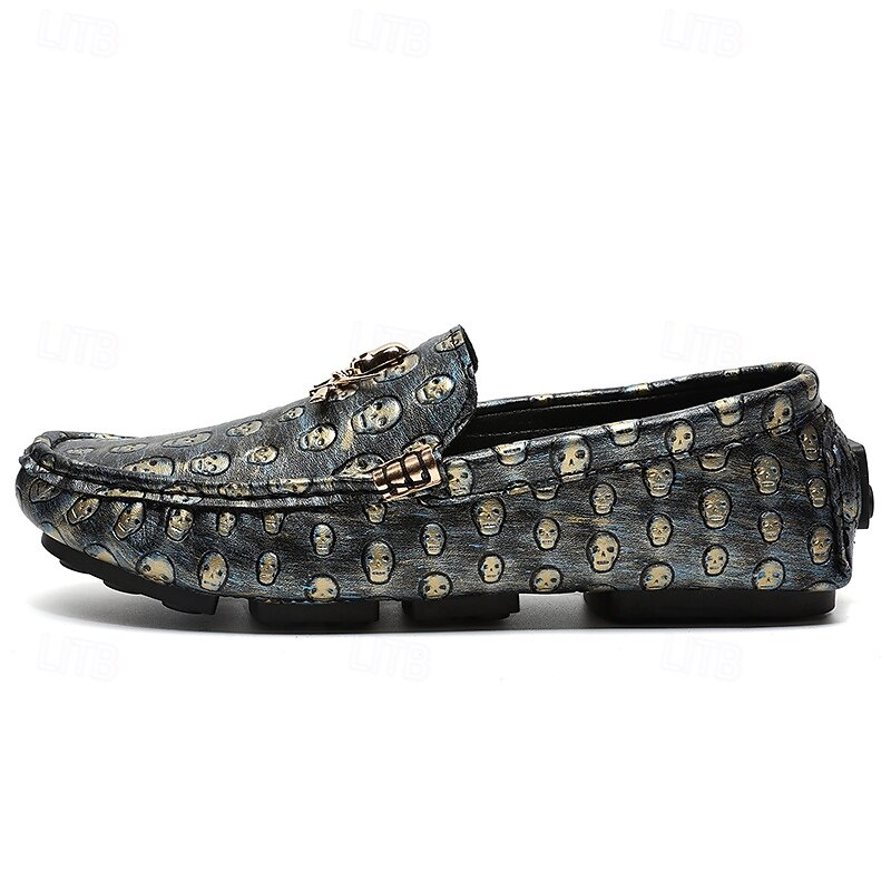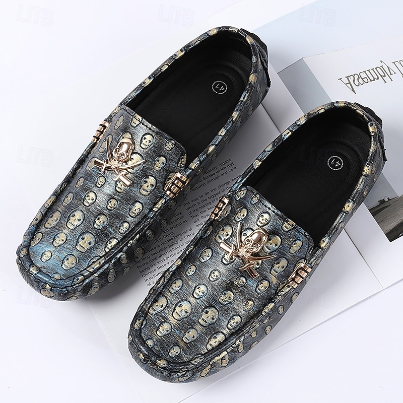 Men's Skull Pattern Slip-On Loafers - Faux Leather Casual Shoes with Metal Skull Detailing, Stylish Gothic Design for Parties and Everyday Wear 23