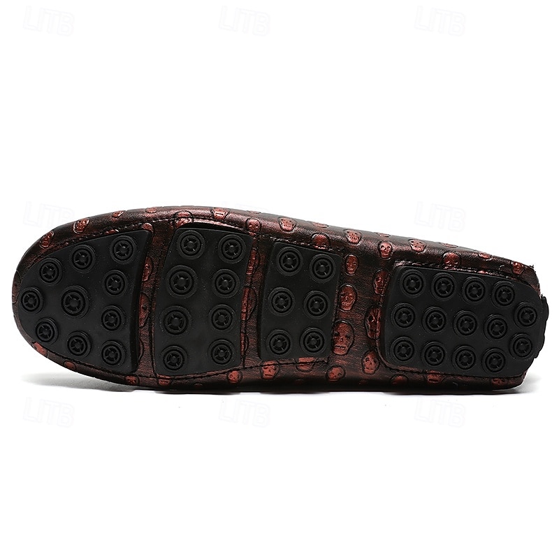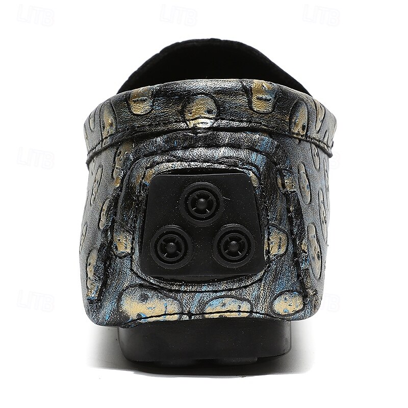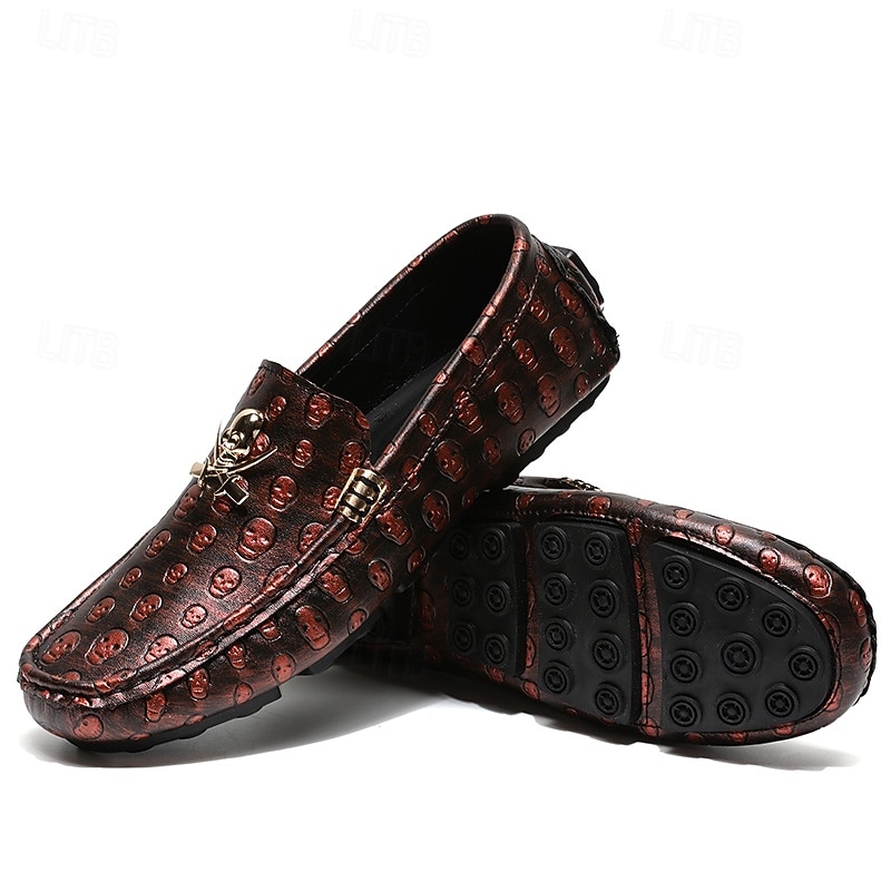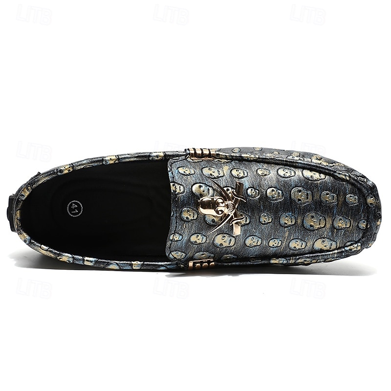 Men's Skull Pattern Slip-On Loafers - Faux Leather Casual Shoes with Metal Skull Detailing, Stylish Gothic Design for Parties and Everyday Wear 25