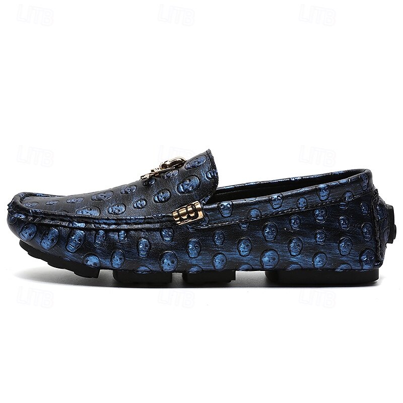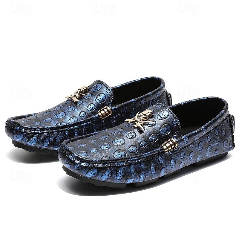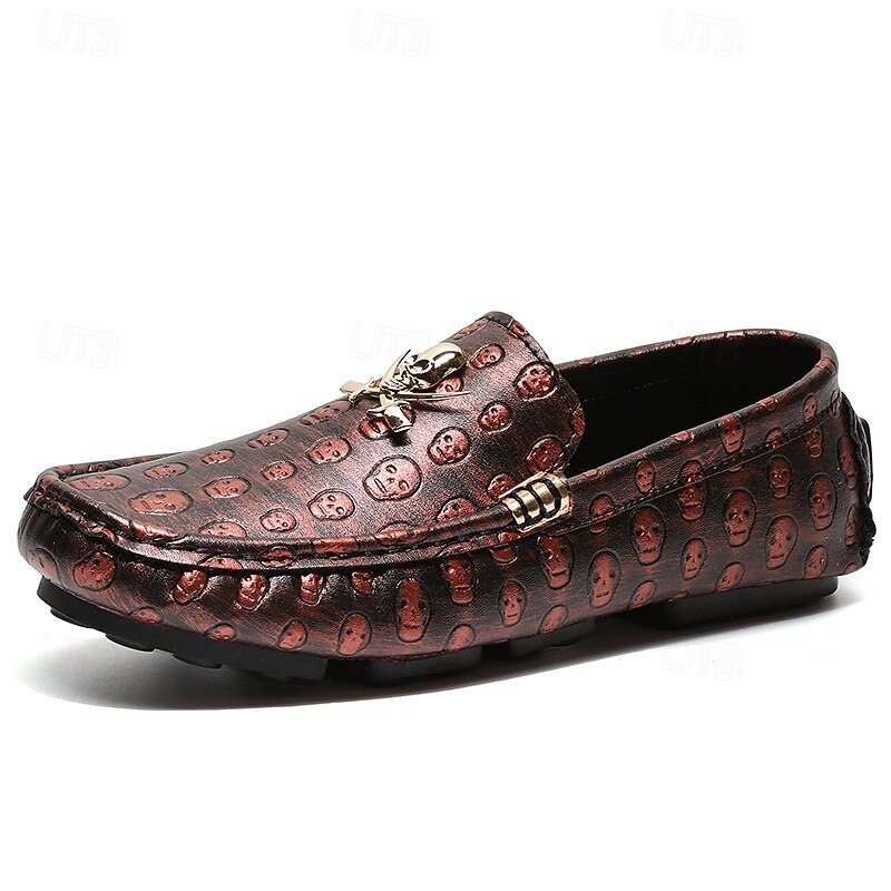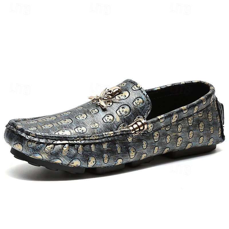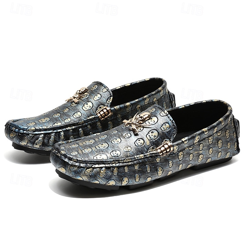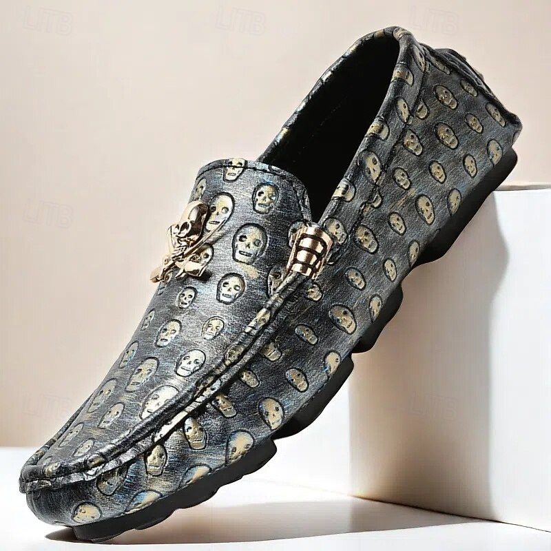 Men's Skull Pattern Slip-On Loafers - Faux Leather Casual Shoes with Metal Skull Detailing, Stylish Gothic Design for Parties and Everyday Wear 1