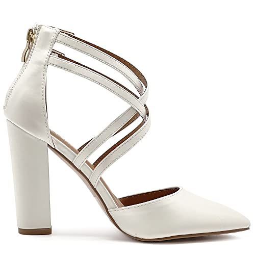 Ollio Women's Shoes Zip Up Pointed Toe Buckle Cross Ankle Straps Chunky Heel Pump H108 1