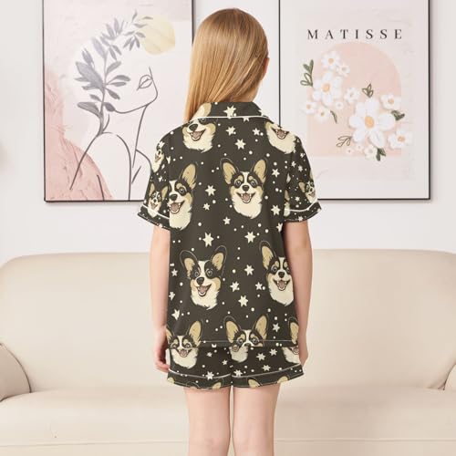 senya Starry Corgi Face Night Satin Summer Pajama Sets Silk Short Sleeve Button Down Sleepwear 4