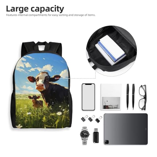 Comfort Fit Unisex Cow Calf Meadow Skies Backpack rugged for Daily Commute & Travel Adventures 16 Inch