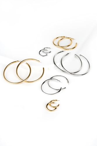 • Classic Silver Hoop Earrings: Crafted from tarnish-proof materials, these stainless steel earrings are small-large silver hoop earrings for women that elevate any ensemble. Perfect for Valentine's Day or as a sophisticated addition to your earring stacks.