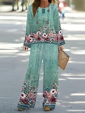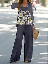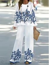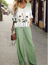 More information about Women's 2 Pieces Basic Neon & Bright Shirt Blouse 3/4 Length Sleeve V Neck Ombre Floral Print Casual Linen Like White Navy Blue Blue Summer Regular Fit