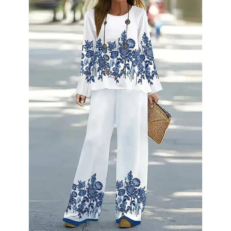 HOT ! Women's 2 Pieces Basic Neon & Bright Shirt Blouse 3/4 Length Sleeve V Neck Ombre Floral Print Casual Linen Like White Navy Blue Blue Summer Regular Fit