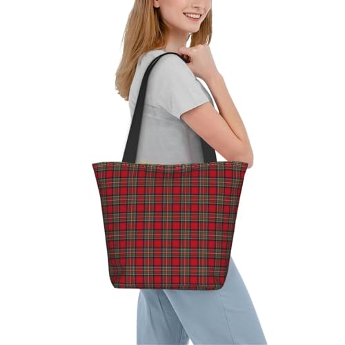 HOT ! Red Green Royal Stewart Tartan Plaid Reusable Zippered Shoulder Bag, Stylish Polyester Tote With Wide Handle & Inner Pocket, Lightweight Durable Shopping & Travel Bag
