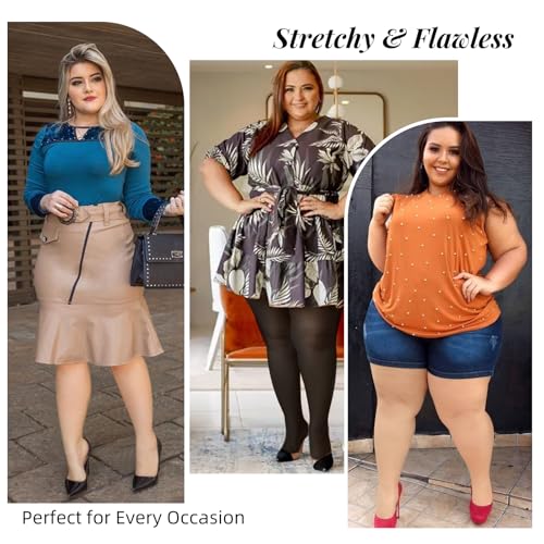 More information about 2 Pairs Plus Size Tights for Women, 40D Semi Sheer T-Crotch Pantyhose High Waist Stockings with Reinforced Toe