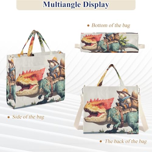 Women Tote Bag Raccoon and Dinosaur Print, Corduroy Fabric Shoulder Handbags with Detachable Strap S 4