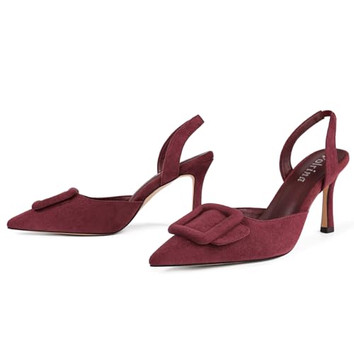 Women Slingback Heels Closed Pointed Toe Kitten Heels Buckle Suede Pumps Comfortable Dress Shoes 1