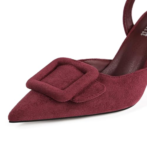 Women Slingback Heels Closed Pointed Toe Kitten Heels Buckle Suede Pumps Comfortable Dress Shoes 5