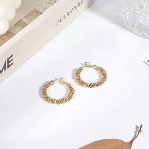 HOT ! 14K Gold Plated Hoop Earrings for Women, Trendy Gold Hoop Earrings Statement Cuff Lightweight Hypoallergenic Jewelry for Her
