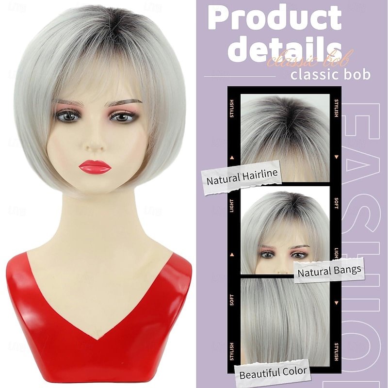 $18.49 - Short Ombre White Blonde Bob Wigs for White Women with Bangs Chin Length Layered Mixed Blonde Cute Straight Pixie Bob Wig Synthetic Natural Looking Daily Party Wig 2025. Shop for cheap Older Wigs online? Buy at lightinthebox.com on sale today!