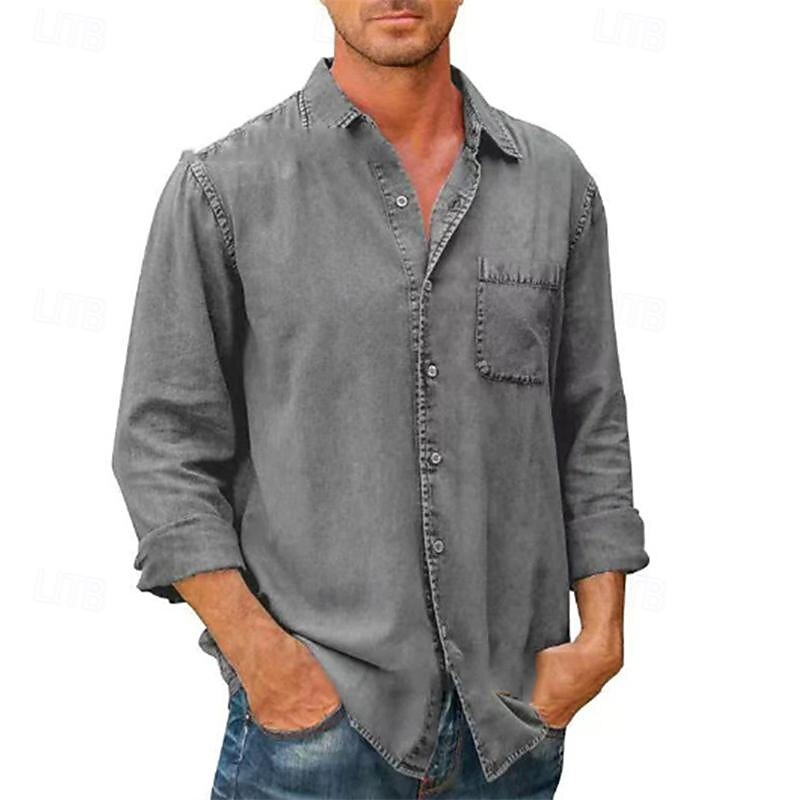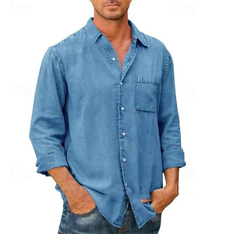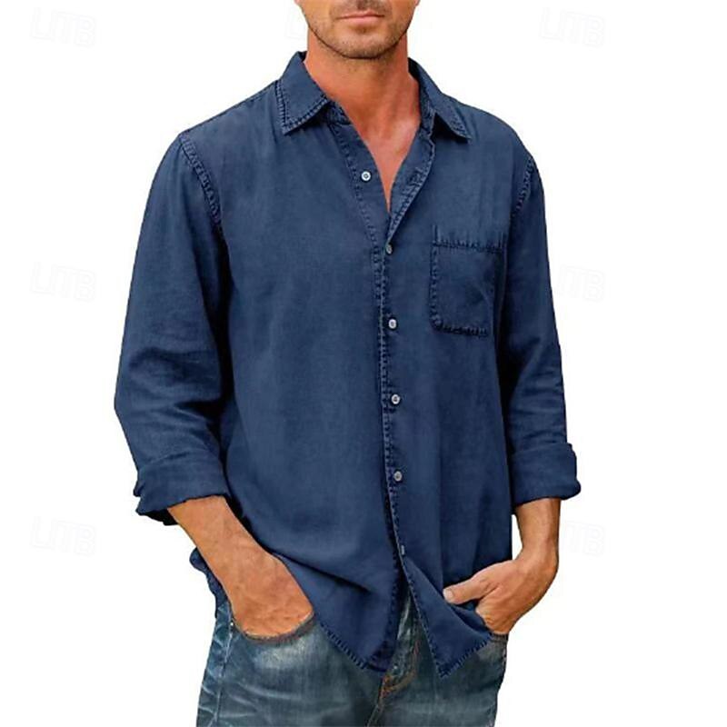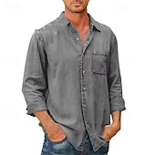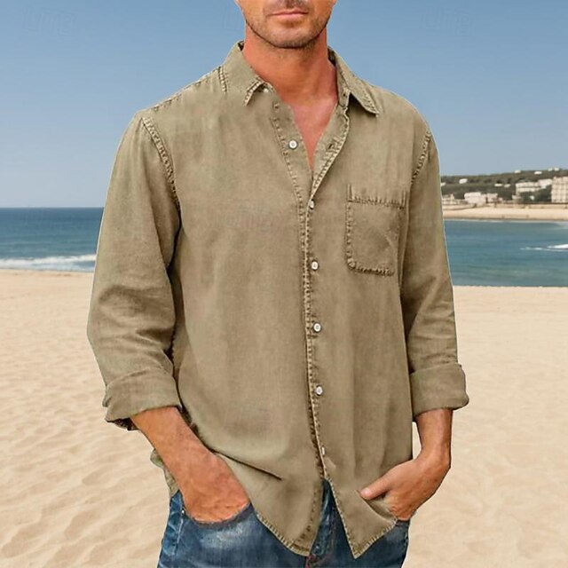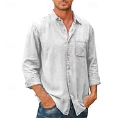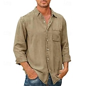 More information about Men's Shirt Summer Shirt Button Up Shirt Casual Shirt Beach Shirt Black White Dark Navy Blue khaki Long Sleeve Plain Lapel Hawaiian Holiday Pocket Clothing Apparel Fashion Casual Comfortable