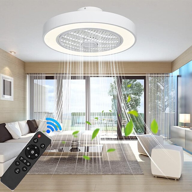 Ceiling Fan with Light 50cm 19.66in 30W*2 Macarone Safe Stepless Dimming Ceiling Fan Light Including Remote Control APP Control for Timed Six Speed Embedded Ceiling Fan with Light AC110V AC220V 21