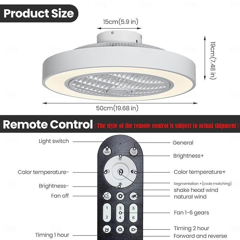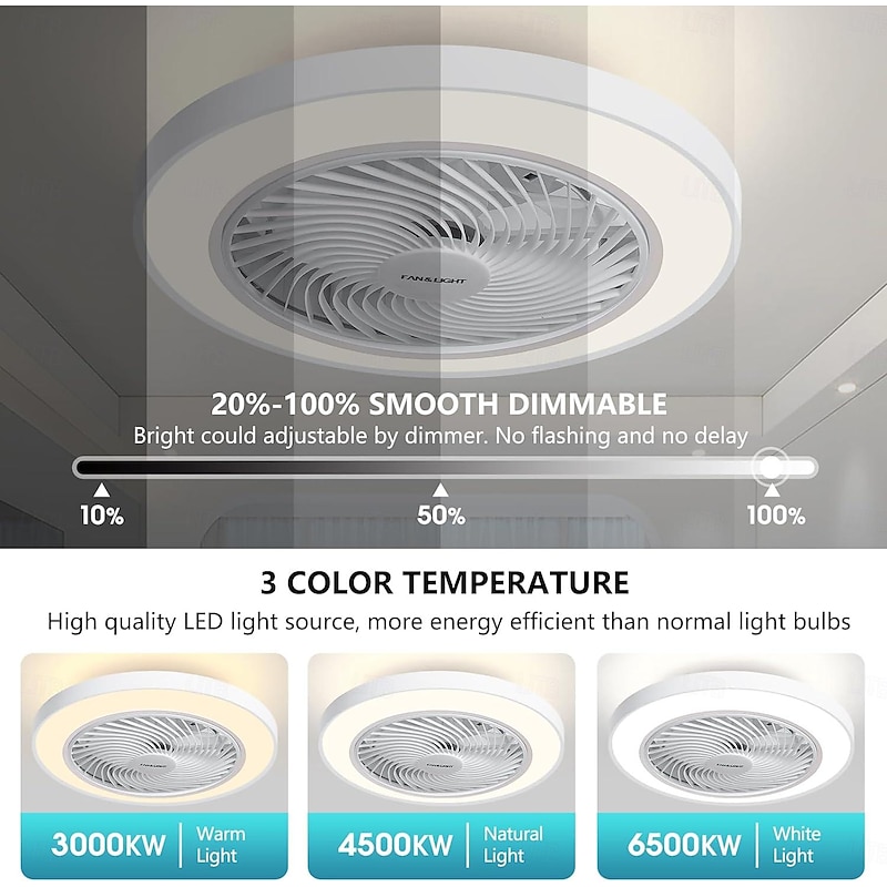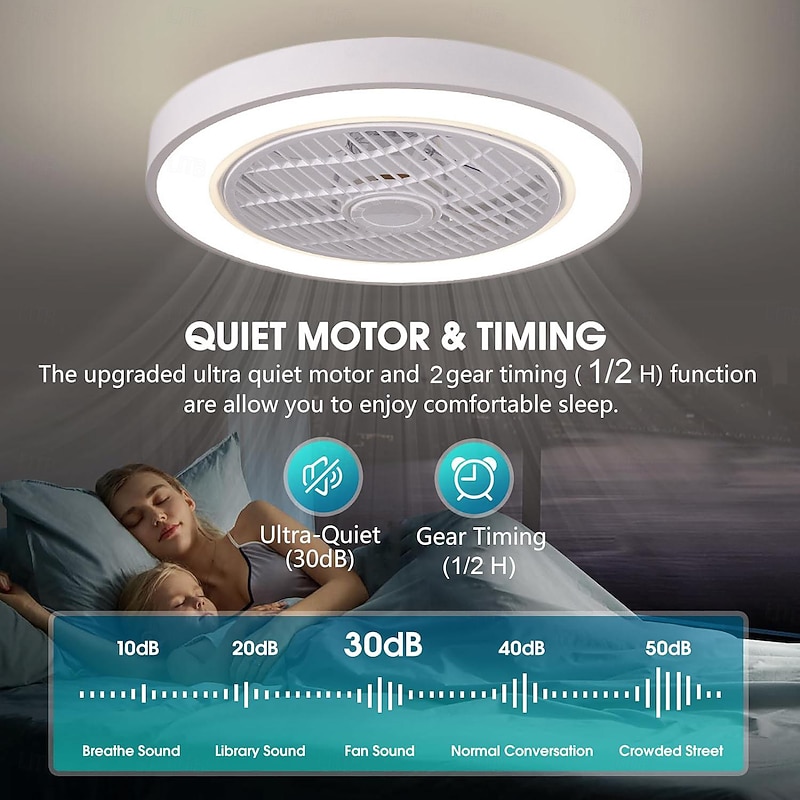More information about Ceiling Fan with Light 50cm 19.66in 30W*2 Macarone Safe Stepless Dimming Ceiling Fan Light Including Remote Control APP Control for Timed Six Speed Embedded Ceiling Fan with Light AC110V AC220V
