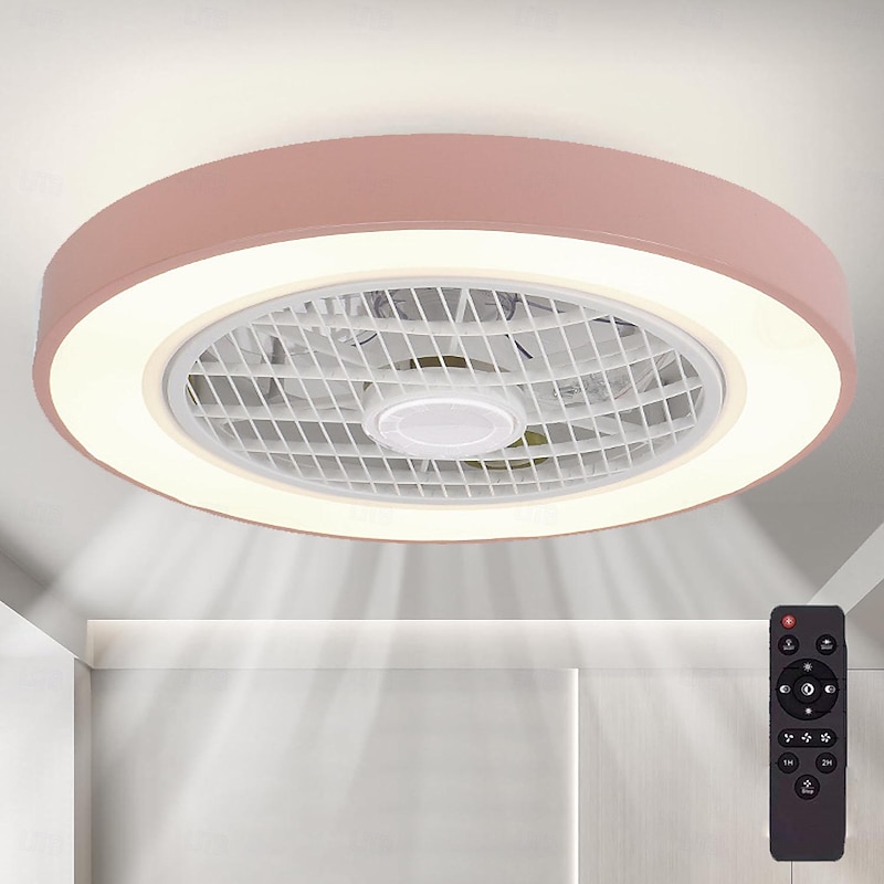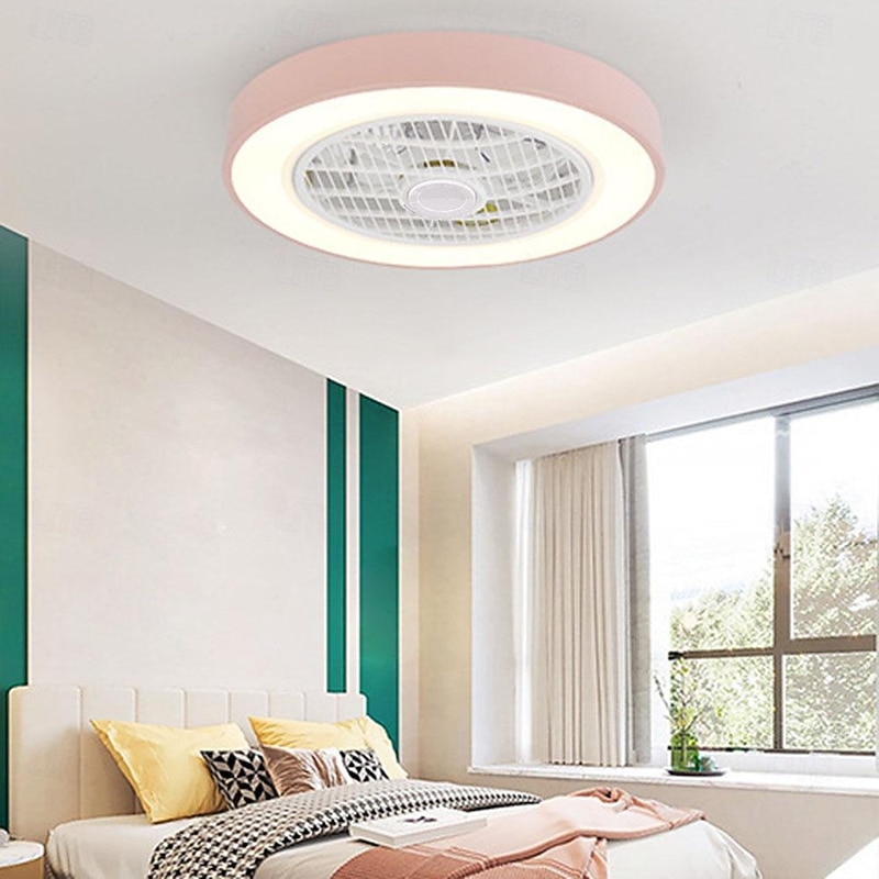 Ceiling Fan with Light 50cm 19.66in 30W*2 Macarone Safe Stepless Dimming Ceiling Fan Light Including Remote Control APP Control for Timed Six Speed Embedded Ceiling Fan with Light AC110V AC220V 24