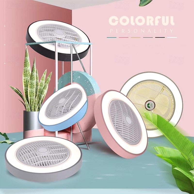 Ceiling Fan with Light 50cm 19.66in 30W*2 Macarone Safe Stepless Dimming Ceiling Fan Light Including Remote Control APP Control for Timed Six Speed Embedded Ceiling Fan with Light AC110V AC220V 5