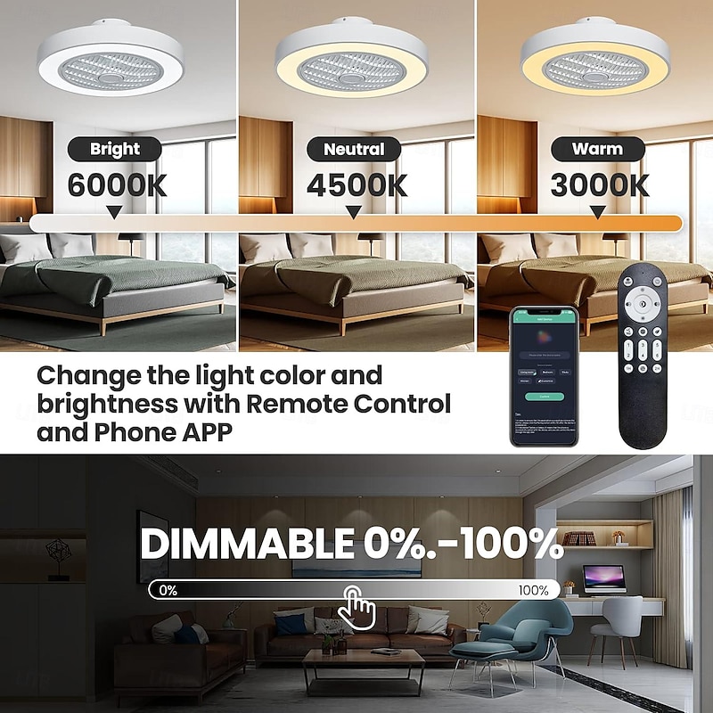 HOT ! Ceiling Fan with Light 50cm 19.66in 30W*2 Macarone Safe Stepless Dimming Ceiling Fan Light Including Remote Control APP Control for Timed Six Speed Embedded Ceiling Fan with Light AC110V AC220V