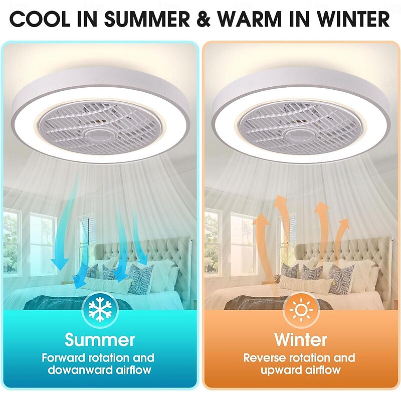 Ceiling Fan with Light 50cm 19.66in 30W*2 Macarone Safe Stepless Dimming Ceiling Fan Light Including Remote Control APP Control for Timed Six Speed Embedded Ceiling Fan with Light AC110V AC220V 25