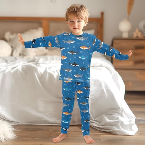 Pajama Sets Long Sleeve Shark Pattern on Blue Soft Comfy Sleepwear 2 Piece PJS 3-8T 3