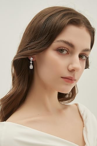 EAMTI Wedding Earrings for Brides Dangle Cubic Zirconia Sterling Silver Post Engagement Earrings for Women 5