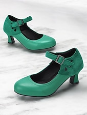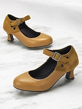 More information about Women's Vintage Gatsby Mary Jane Heels-Faux Leather & Suede Mid Heel Pumps with Buckle Strap for Retro Formal & Dance Wear