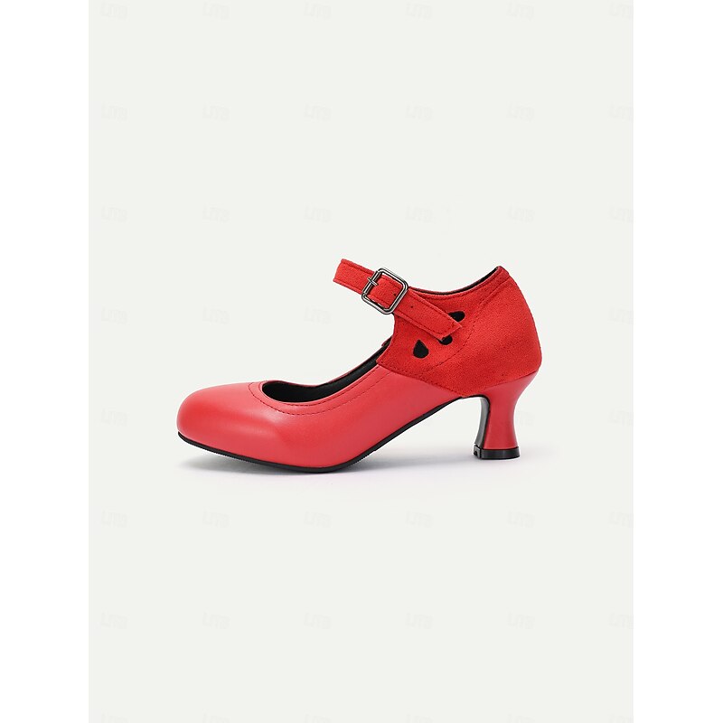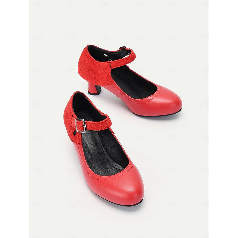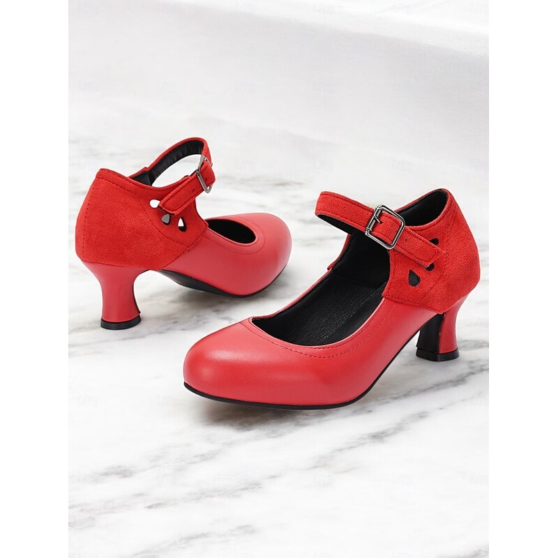 HOT ! Women's Vintage Gatsby Mary Jane Heels-Faux Leather & Suede Mid Heel Pumps with Buckle Strap for Retro Formal & Dance Wear