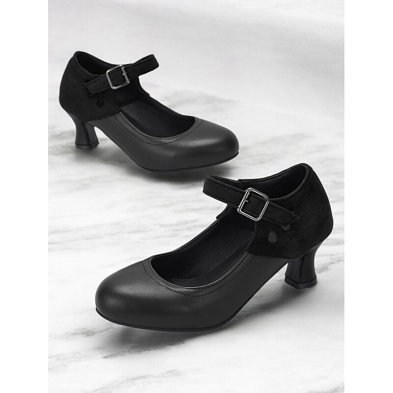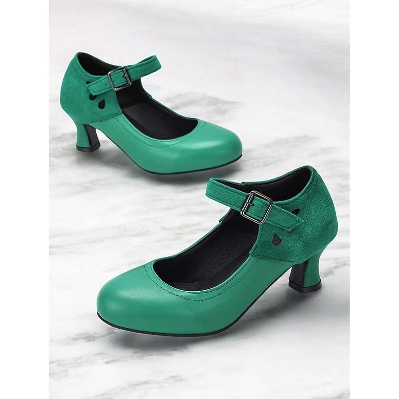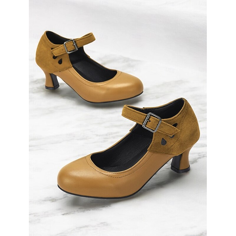 Women's Vintage Gatsby Mary Jane Heels-Faux Leather & Suede Mid Heel Pumps with Buckle Strap for Retro Formal & Dance Wear 1