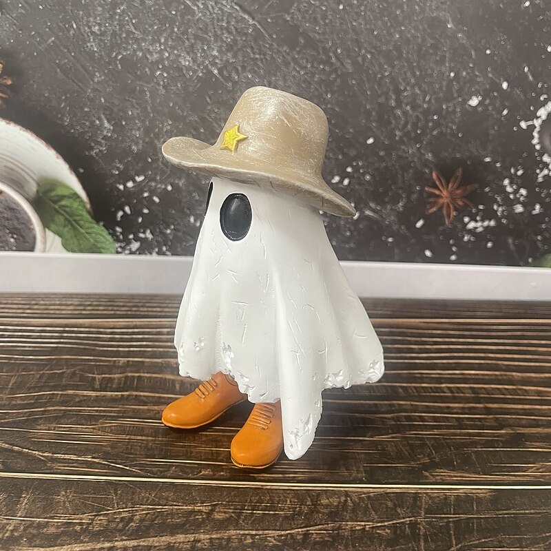 HOT ! Halloween Cowboy Cute Ghost Decoration Resin Figurine, Spooky Resin Sculpture Decor, Small Desktop Statue for Home, Office, Party Decoration