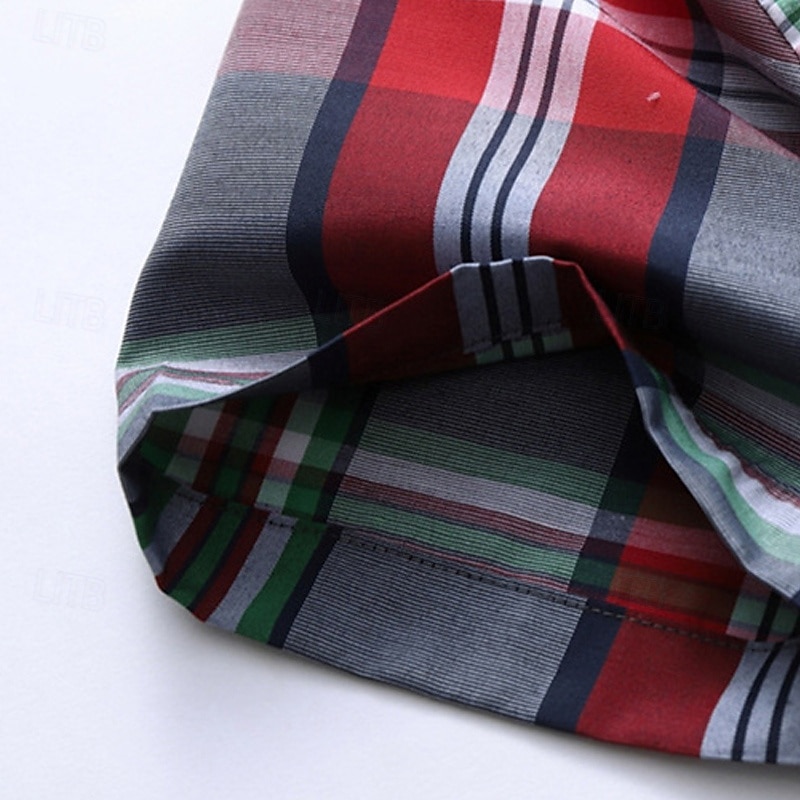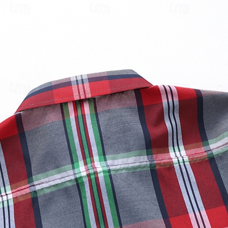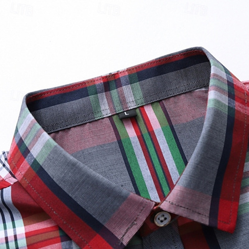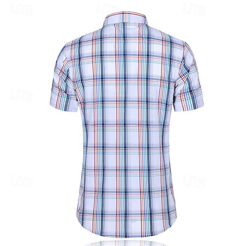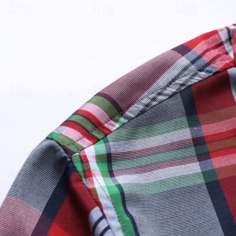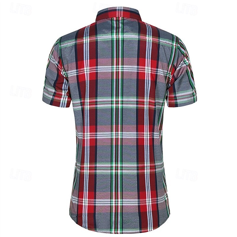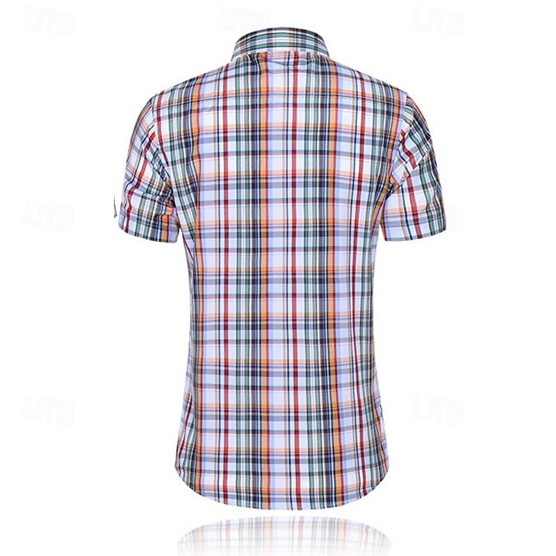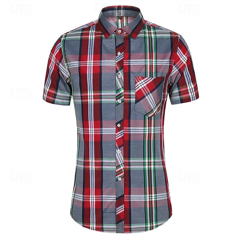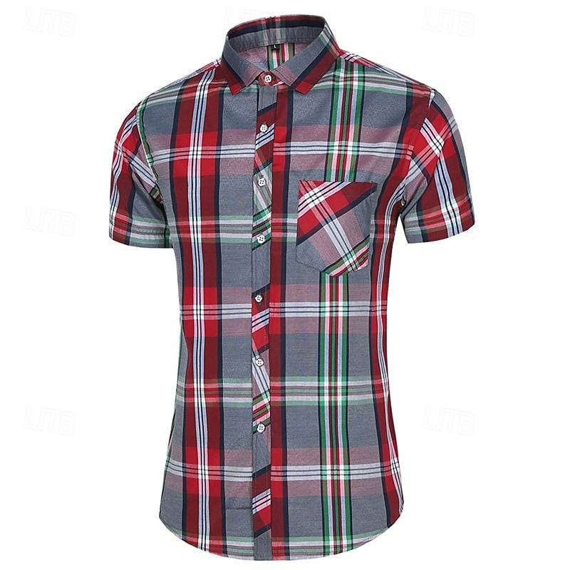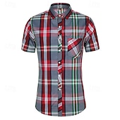 More information about Men's Shirt Dress Shirt Button Up Shirt Plaid Party Work Red Blue Orange Light Sky Blue Short Sleeve Lapel Summer Clothing Apparel Front Pocket