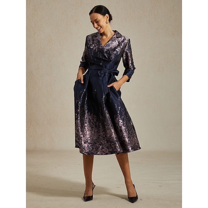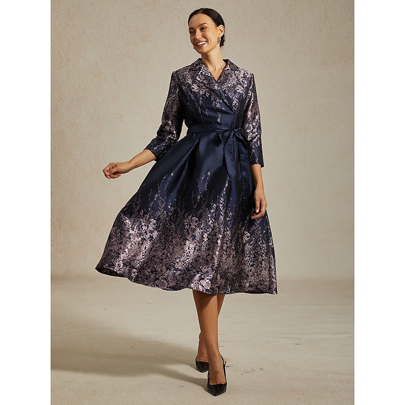 More information about Women's Midi Dress Sheath Dress Elegant Birthday Floral 3/4 Length Sleeve Shirt Collar Navy Blue Summer Spring Fall Winter
