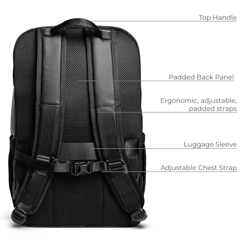 LARGE BACKPACK FOR TRAVEL: Designed for travelers and commuters, this travel backpack and carry on gives you organization in every inch with water-resistant, durable material and ergonomic straps and a back panel that are padded for comfort.GREAT FOR VERSATILE USE: This gym backpack is great for the gym, studio, traveling, pickleball, and any other activity your busy lifestyle may require. The 25-liter bag measures 11-inches long, 8-inches wide, and 17.5-inches in high.IDEAL ORGANIZATION: Gain the interior organization you need thanks to the collapsible water bottle side pockets, padded laptop sleeve, document sleeve with mesh zip pocket, and front pocket.EASY TO TRAVEL WITH: Manage the airport with ease when using this travel bag. A luggage sleeve allows you to set on top of your suitcase when heading to your gate and there is a top handle to comfortably move the bag when needed.COMFORTABLE ADJUSTABILITY: The adjustable, ergonomic straps and back panel on this athletic backpack are padded for ideal added comfort when commuting from one place to another. Easily open the bag with a back clam shell opening Perfect for everyday use. High quality materials and excellent craftsmanship ensure long-lasting durability.