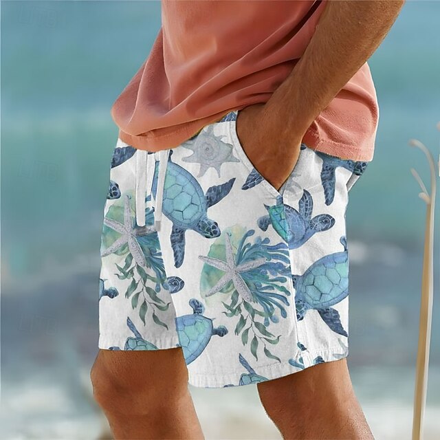 $23.99 - Men's Turtles Sea Creatures Cotton Linen Shorts Shorts Mid Waist Hawaiian Vacation Dailywear Holiday Drawstring Pocket Elastic Waist Designer Clothing Apparel 2025. Shop for cheap Ocean Print online? Buy at lightinthebox.com on sale today!
