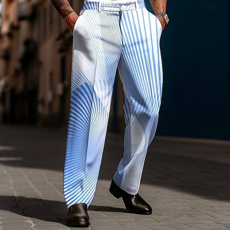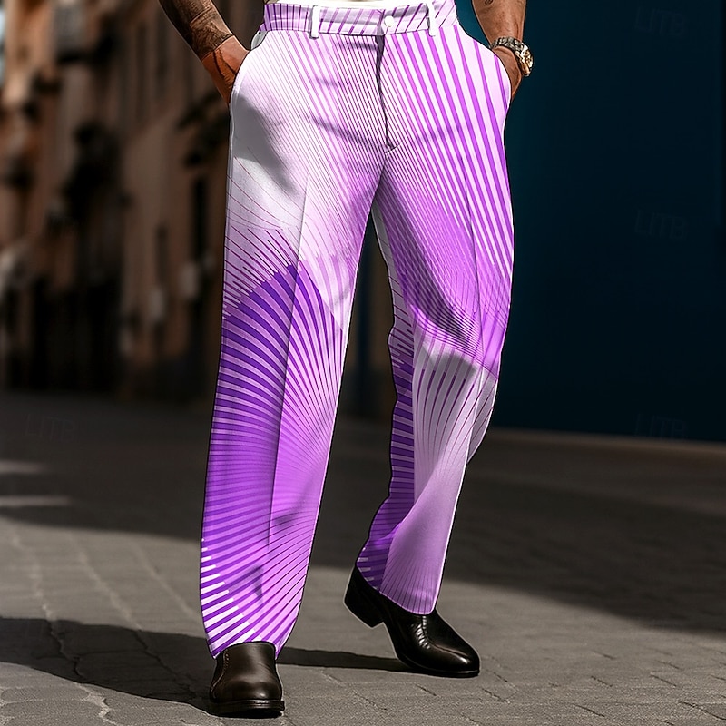HOT ! Men's Geometric Gradient Line Dress Pants Trousers Suit Pants Mid Waist Casual Holiday Streetwear Relaxed Fit Flat Front Dress Pants with Side Pockets Spring Fall 3D Print Blue Purple Green