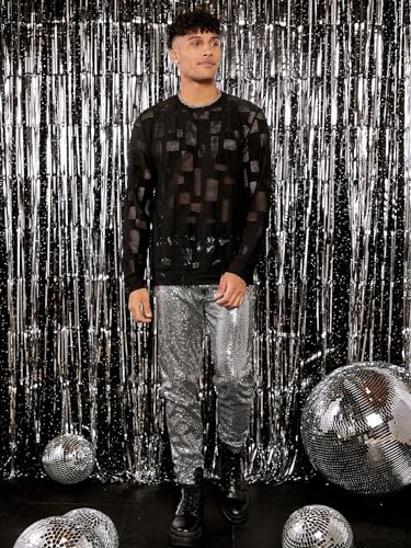 WDIRARA Men's Hollow Out Mesh Long Sleeve Round Neck Pullover Sheer Sweatshirt Tops 5