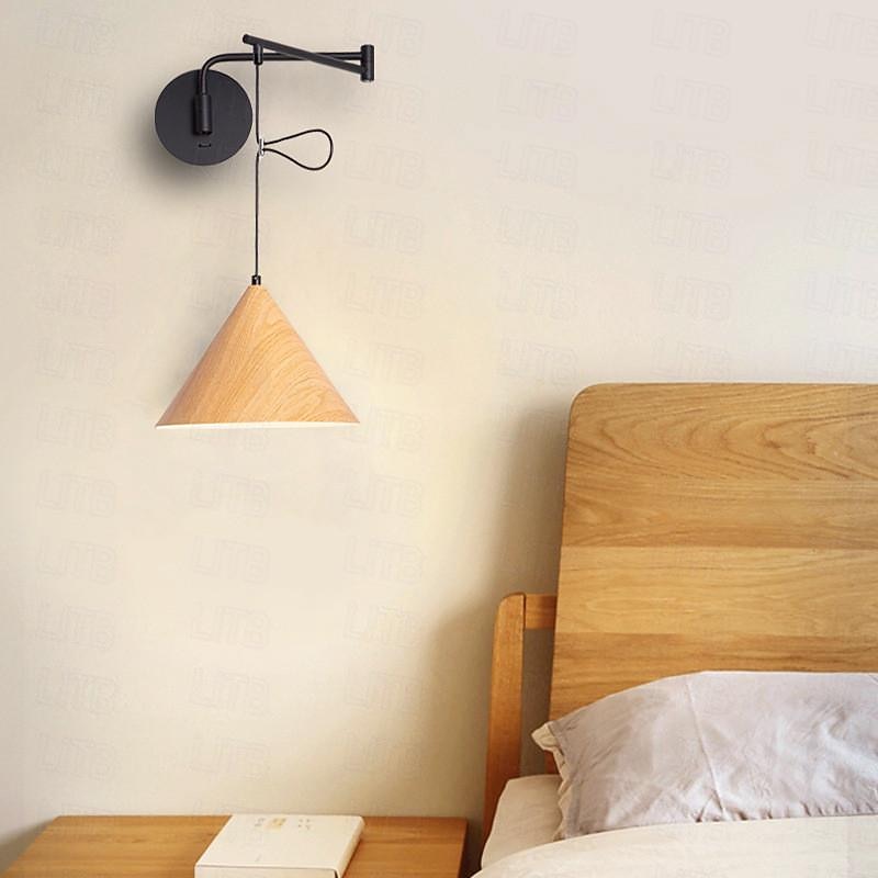 Led Indoor Wall Light 3 Light Color Foldable Swing Arm Wall Light Modern Bedside Wall Sconce Wooden Lampshade Lighting Fixtures Creative Modern Indoor Wall Lights Living Room Bedroom Metal Wall Light 110-240V 12