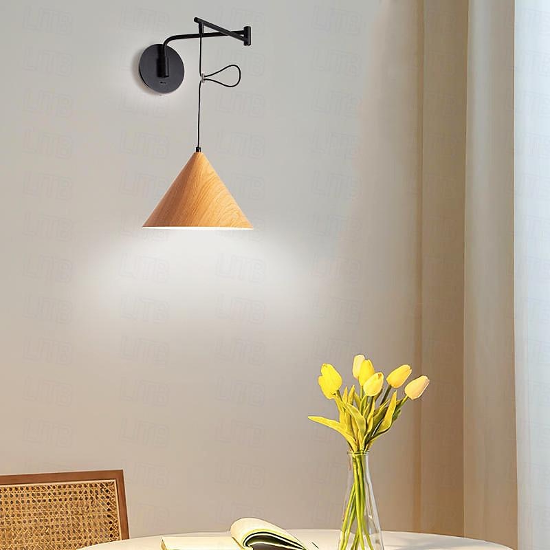 Led Indoor Wall Light 3 Light Color Foldable Swing Arm Wall Light Modern Bedside Wall Sconce Wooden Lampshade Lighting Fixtures Creative Modern Indoor Wall Lights Living Room Bedroom Metal Wall Light 110-240V 3