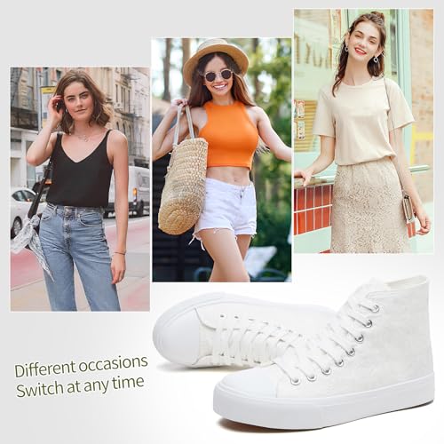 • Breathable and Lightweight for All-Day Wear: Specially woven embroidered fabric for womens high top canvas sneakers enhances airflow, keeping feet cool and comfortable even on hot summer days