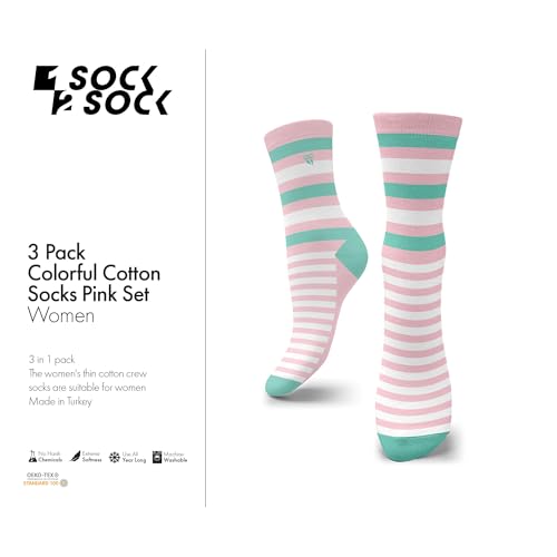 1SOCK2SOCK Women's Colorful Thin Crew Socks 3 Pack Gift Box Soft Cotton Casual Patterned 5