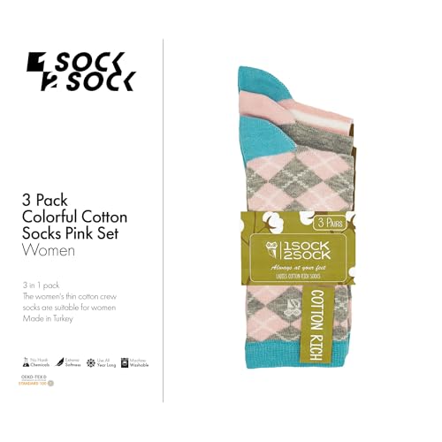 1SOCK2SOCK Women's Colorful Thin Crew Socks 3 Pack Gift Box Soft Cotton Casual Patterned 1