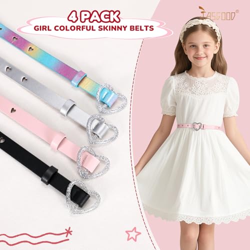 JASGOOD 4 Pcs Girls Belt Kids PU Leather Waist Belt Hollow Heart Design Plastic Buckle Girls belt for Dress Jeans Pants 3