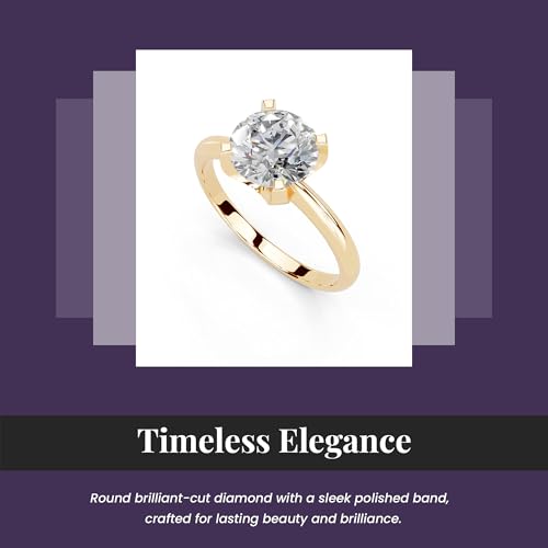 1-5 Carat 14K 18K Gold Platinum Round Cut Classic Solitaire Lab Grown Diamond Ring, Engagement, Anniversary, Wedding, IGI Certified, Promise Rings for Women (1-5 Ct, F-G Color, VS1-VS2 Clarity) 3
