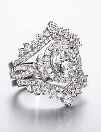 HOT ! CannyCat Oval Cut Moissanite Wedding Ring Sets for Women Infinity 3.88 CTTW Moissanite Cathedral Rings with Curved Enhancers Bridal Set Anniversary Engagement Ring Set (size-6)