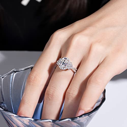 • WEDDING RING: This stunning engagement ring features a 7x9 mm, 2 carat oval cut center Moissanite, which is surrounded by 1.5 mm 26 pieces round brilliant Moissanite to create a halo, additional 32 pieces 1.2 mm Moissanites sparkle on the twisted shank, the breathtaking design further enhances the central gem more glamorous. Pair with these matching curved bands completes this perfect ensemble, Making you focus of the feast, banquet, meeting, dating, prom, party