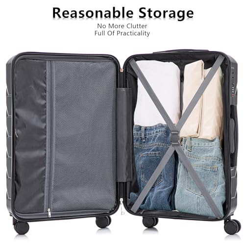 Durable & Waterproof:Our family suitcase set features sturdy watertight ABS external, which is easy to clean and long-term use. It can carry a large weight while having four swivel wheels that can move effortlessly in any direction.Full-Capacity Design Inside Suitcase: Large storage space and fully lined interior with zippered compartment for this hard side luggage sets to keep your items well organized. Low profile top and side handle provide for ease in handling.Retractable Handle:The ergonomically designed push-button 3-step adjustable telescopic handle makes opening and closing a breeze. What's more, it fits any size hand and reduces stress when climbing stairs.Modern Appearance:The fashionable and smooth vertical stripe design of the rolling luggage makes it more resistant to pressure and wear and brings a good mood to your journey. It includes four molded side feet, they allow the luggage to remain upright even when standing on its side.Aesthetic appeal: This sleek and modern design enhances the visual appeal of any use scenario. Its compact size and versatility allow you to create maximum use in even limited spaces. Perfect for everyday use. top-grade materials and excellent craftsmanship ensure long-lasting durability.